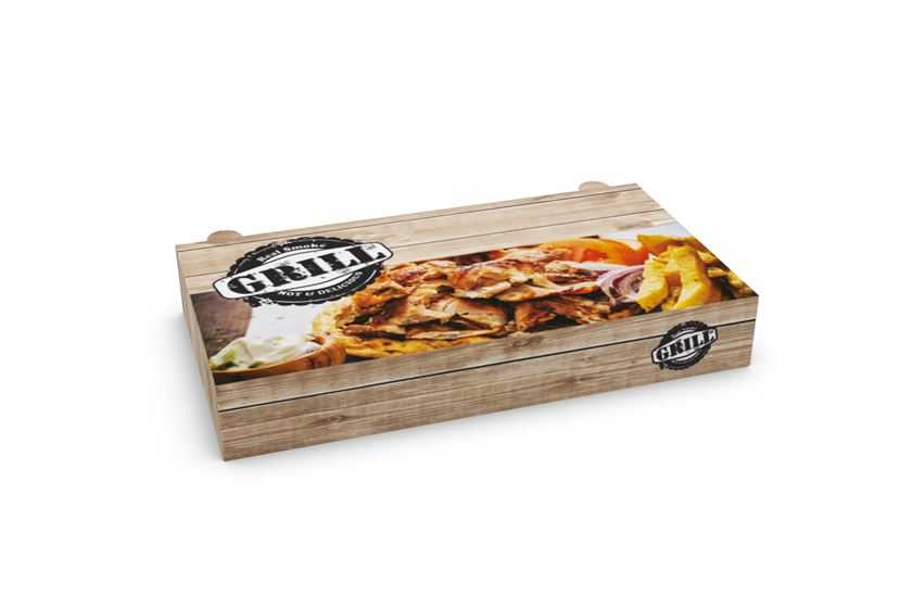 Xάρτινα, τυπωμένα κουτιά με μότο: “GRILL”, ιδανικά για τοποθέτηση μεγάλης μερίδας φαγητού.